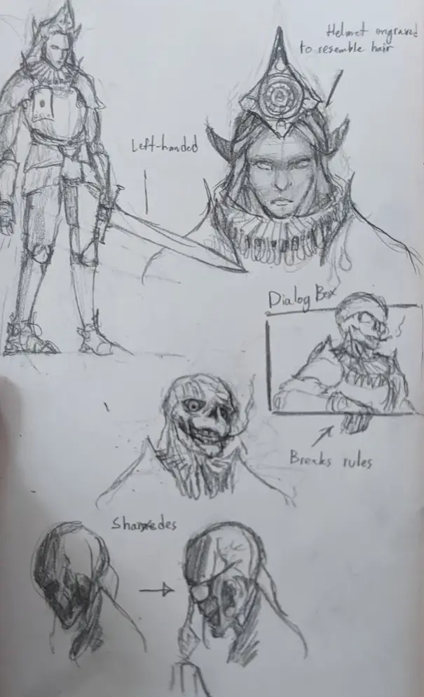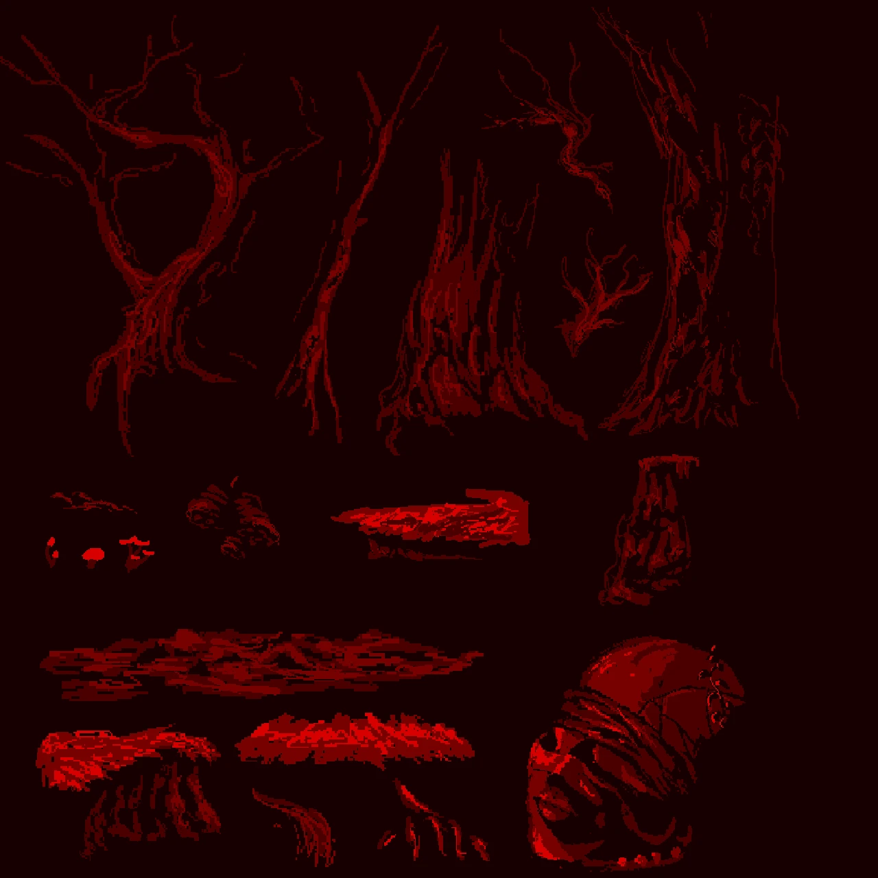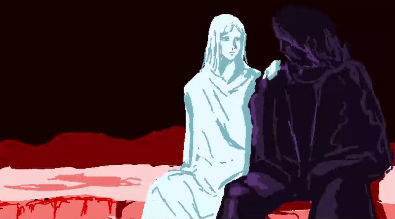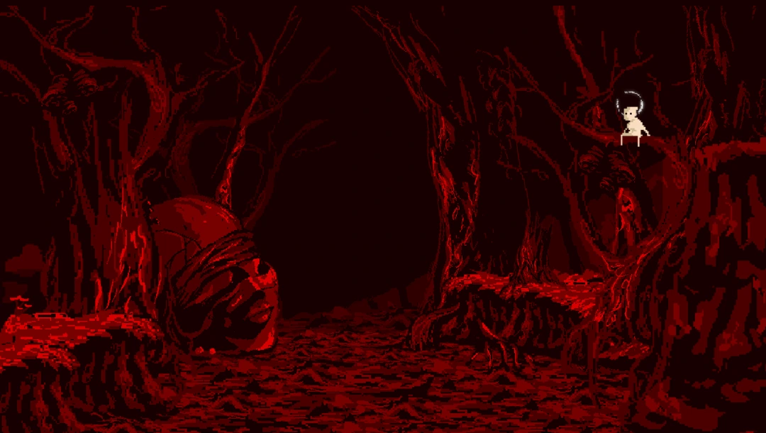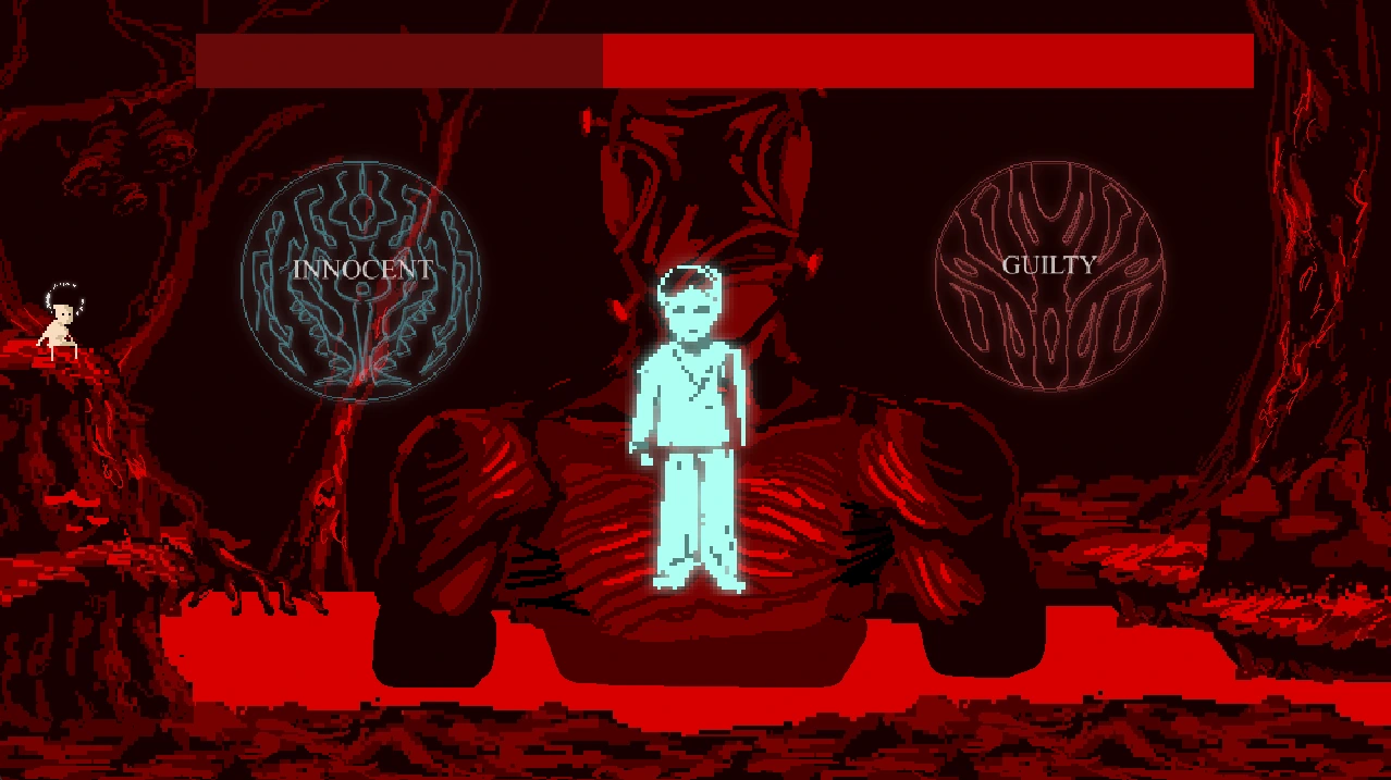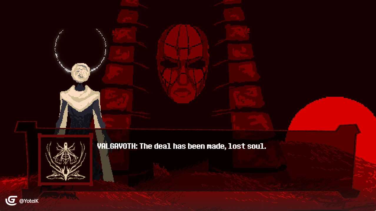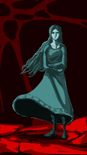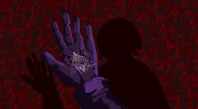 The most identifiable visual element of The Innocent’s Descent is its use of colour. Red was the baseline for Hell and all of its native entities. Rodion, the protagonist, is purple to represent his liminality. Valgavoth, Hell’s ruler, is a warm off-white to represent a being not native to this world but adopts it as best it can. René, Rodion’s lover, by contrast, is made up of blues and whites to resemble a ghost, someone completely out of place and perhaps intangible. Establishing this language first cut a large part of the design process down, so I could streamline asset output during development.